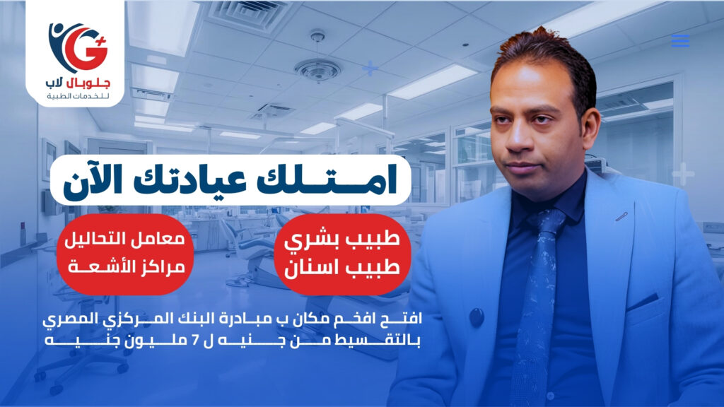 بنساعد اي حد عايز يبدأ في المجال الخاص بيه سواء دكتــــور بشـــري او دكتــور أســــنان أو دكتور تحـــاليل او اخــصائي أشعة و عنده نقص في الفلوس الكاش إنه يفـــتح المكان الخـــاص بيه بكامل الأجهزة و المعدات الطــــبية و متابعة صـــيانة الأجهزة طوال فترة السداد بالقســــط و دي مــــبادرة من البنك المــركزي المصري لدعـــم القـــطاع الطـــبي بالتعـــاون مع شركة جـــلوبال